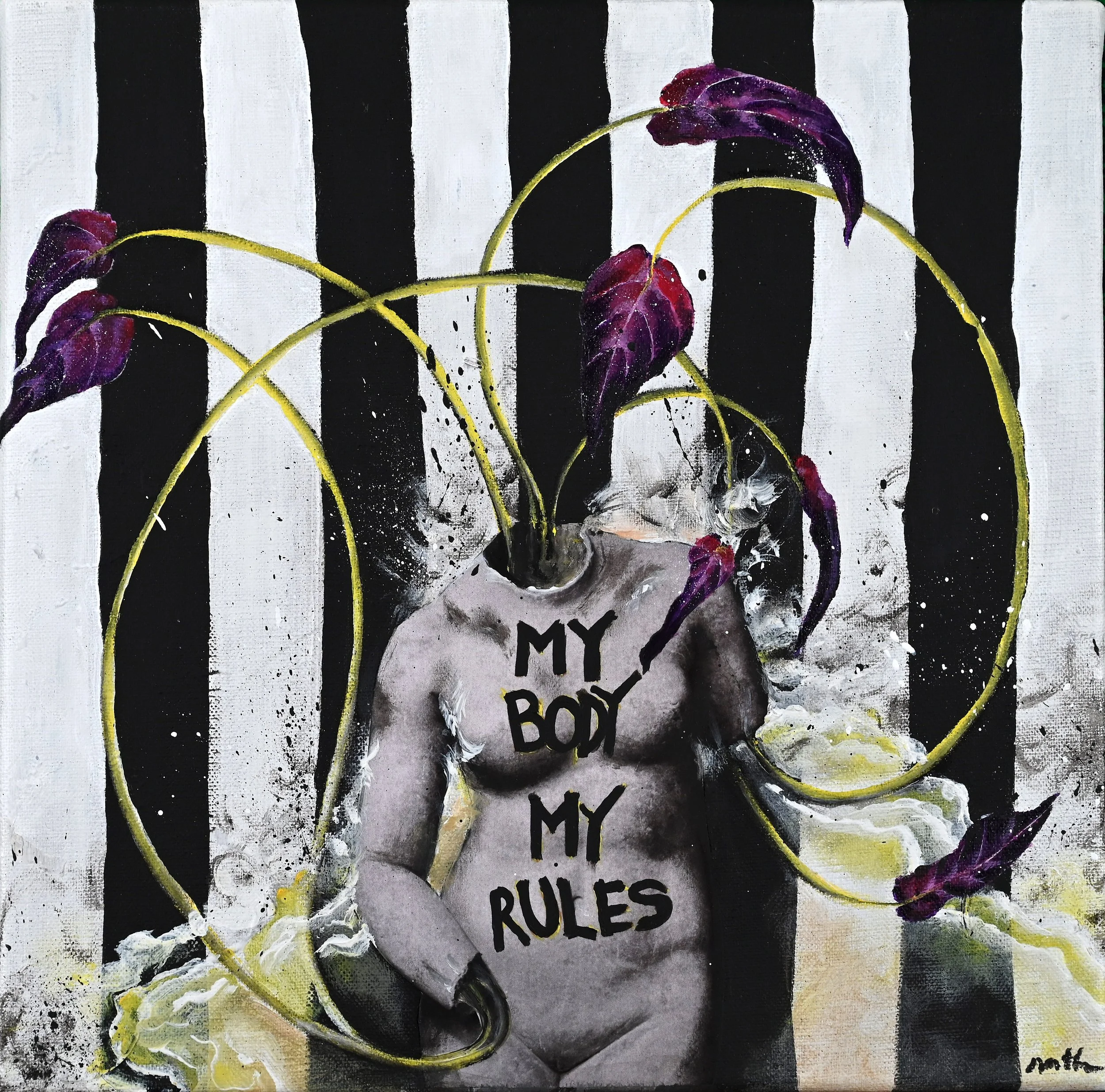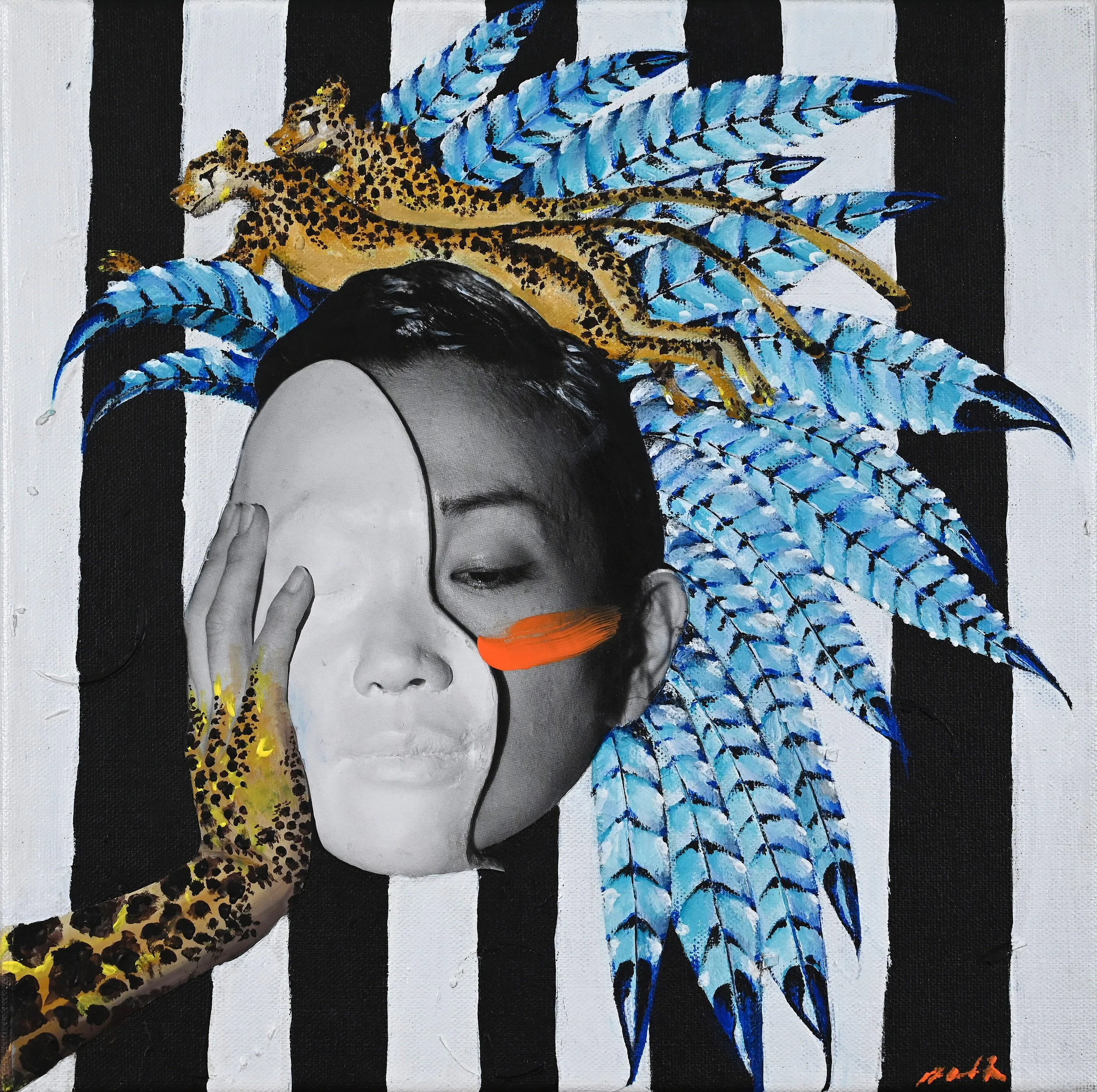 L’équilibre - Acrylique sur toile et collage - 80x80 cm.